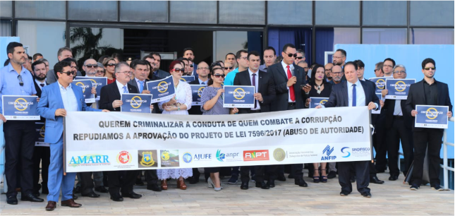 De 19 a 23 de agosto ocorreram diversos atos públicos contra contra a sanção do PL 7596/17, que define os crimes de abuso de autoridade. A medida foi aprovada pela Câmara dos Deputados e aguarda análise presidencial.