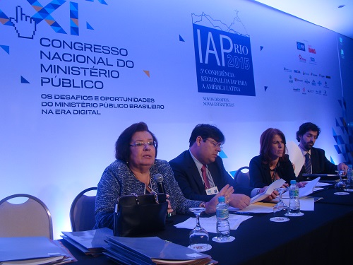 Ao término do XXI Congresso Nacional do Ministério Público, a presidente da CONAMP, Norma Cavalcanti, e o presidente da Associação do MP do Rio de Janeiro (Amperj), Luciano Mattos compuseram a mesa da Plenária. Também participaram os promotores de Justiça do MPRJ Gláucia Santana e Rogério Pacheco, integrantes da Comissão Executiva do evento.