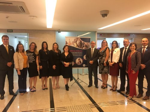 Também compuseram a mesa de abertura, o conselheiro Valter Shuenquener, presidente da CDDF/CNMP; a deputada federal e coordenadora da bancada feminina na Câmara dos Deputados, Soraya Santos; a encarregada de negócios da Delegação da União Europeia no Brasil, Claudia Gintersdorfer; a secretária-geral do CNMP, Adriana Zawada; e a secretária de Direitos Humanos e Defesa Coletiva do CNMP, Ivana Farin; a procuradora federal dos Direitos do Cidadão Deborah Duprat; a subprocuradora-geral da República Ela Wiecko; a secretária de Políticas para as Mulheres, Andreza Colatto; a representante do Conselho Nacional de Procuradores-Gerais (CNPG) Alice Freire; a conselheira do Conselho Nacional de Direitos Humanos Nivia Silva; o presidente da Associação Nacional dos Procuradores da República, José Robalinho; o vice-presidente da Associação Nacional dos Procuradores do Trabalho, Helder Amorim; e a vice-presidente do Conselho Nacional de Procuradores-Gerais de Contas, Cláudia Pereira.
