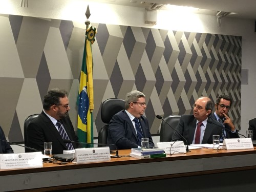 O 1º vice-presidente da CONAMP, Victor Hugo Azevedo, participou nesta segunda-feira (07) de audiência pública para debater a reforma do Código Penal (PLS 236/2012). Promovida pela Comissão de Constituição e Justiça (CCJ) do Senado Federal, a discussão reuniu ainda representantes de entidades de policiais, advogados, defensores públicos e juízes. O relator da proposta é o senador Antonio Anastasia (PSDB/MG).