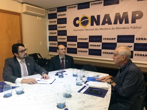 O 2º vice-presidente da CONAMP, Tarcísio Bonfim, e o presidente da Associação do Ministério Público do Acre (Ampac), Francisco Maia, receberam nos dias 10 e 11 de abril representantes das companhias aéreas Avianca, o coordenador regional Felipe Gouveia, e a gerente Andrea Braga; e Azul, o supervisor José de Jesus Martins.