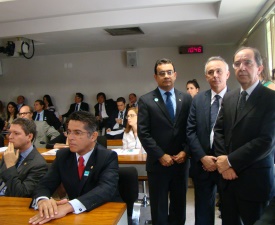 A diretoria da Associação Nacional dos membros do Ministério Público (CONAMP) acompanhou a sabatina dos três nomes indicados ao cargo de ministro do Tribunal de Contas da União (TCU) realizada ontem (24) pela Comissão de Assuntos Econômicos (CAE) do Senado Federal. O consultor legislativo do Senado Bruno Dantas, indicado pela base do governo; o consultor de Orçamento Fernando Moutinho, indicado pelos líderes do PSDB, DEM, PSOL, PSB e PDT; e o auditor do TCU Sérgio da Silva Mendes, indicado pelo senador Vicentinho Alves (SDD/TO), são os candidatos à vaga decorrente da aposentadoria do ministro Valmir Campelo.
