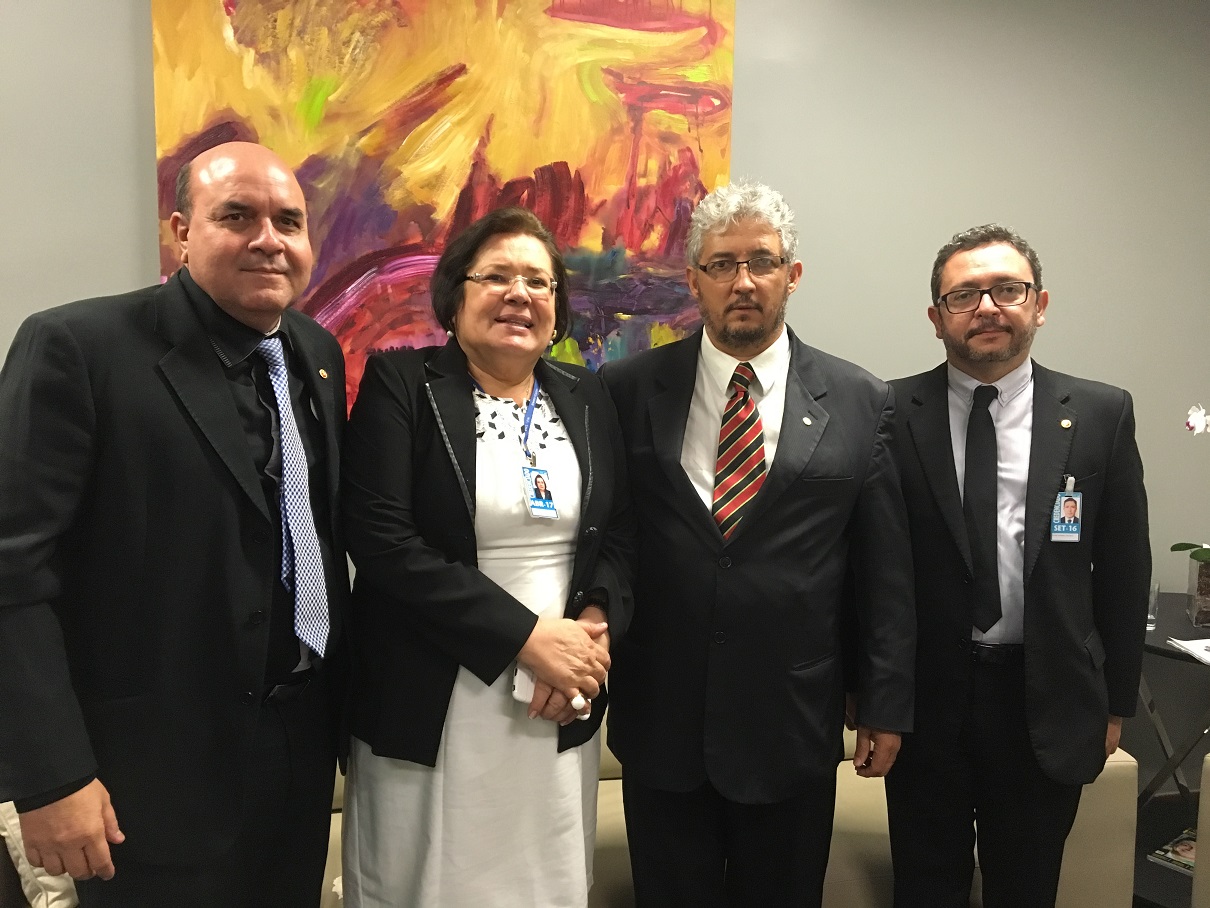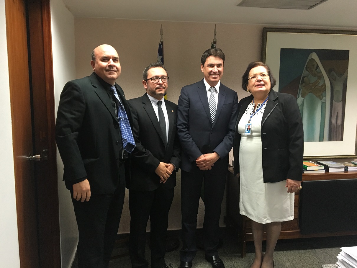 A presidente da CONAMP, Norma Cavalcanti, o secretário-geral da entidade, Elísio Teixeira, e o presidente da Associação Goiana do Ministério Público (AGMP), Benedito Torres, participaram do encontro com o parlamentar.