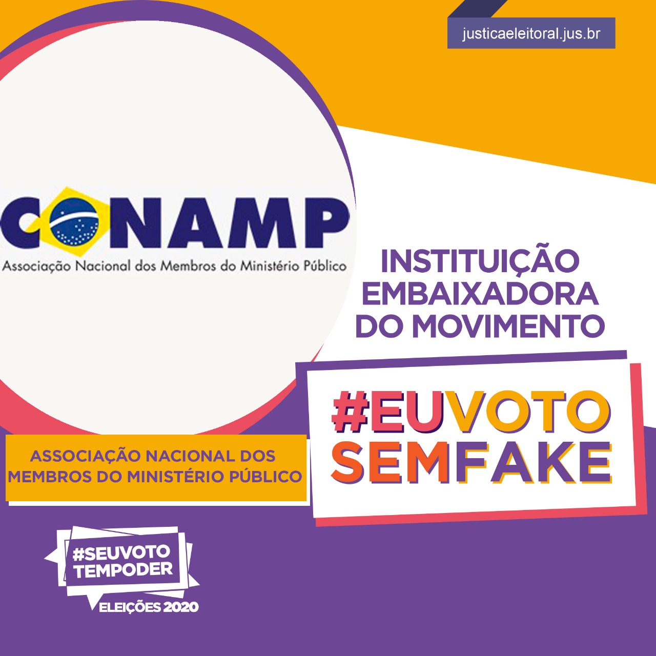 A CONAMP é uma das instituições embaixadoras do movimento #EuVotoSemFake, capitaneado pelo Tribunal Superior Eleitoral (TSE).