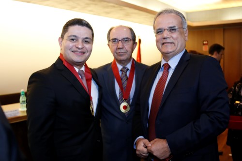 O presidente da CONAMP, Victor Hugo Azevedo, a ex-presidente da entidade, Norma Cavalcanti, e o secretário-geral, Elísio Teixeira foram homenageados com a medalha da Associação Nacional do Ministério Público Militar (ANMPM). A solenidade de outorga ocorreu no dia 26 de outubro, em Brasília.