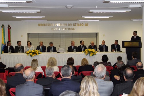 A presidente da CONAMP, Norma Cavalcanti, o 1º vice-presidente da entidade, Victor Hugo Azevedo, e o tesoureiro, Marcelo Oliveira, prestigiaram a solenidade posse. Luciano Trierweiller Naschenweng, presidente da Associação Catarinense do Ministério Público (ACMP), também participou da cerimônia.