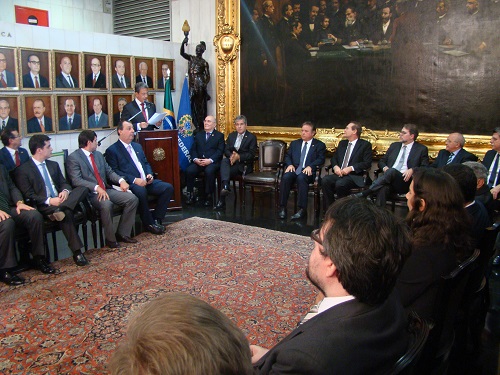 Em discurso, no salão Nobre, o presidente do Senado, Renan Calheiros (PMDB-AL lembrou as iniciativas que o legislativo tomou como a apresentação da Agenda Brasil, um roteiro com 28 proposições englobadas em 3 eixos para reaquecer a economia, ampliar a segurança jurídica, melhorar o ambiente de negócios e a confiança ao país.