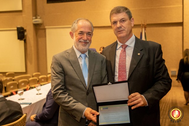 O tesoureiro da CONAMP, José Silvério Perdigão, esteve presente. Ele entregou ao ex-presidente da AESMP Adélcion Caliman uma placa em homenagem aos trabalhos prestados em prol do Ministério Público brasileiro.