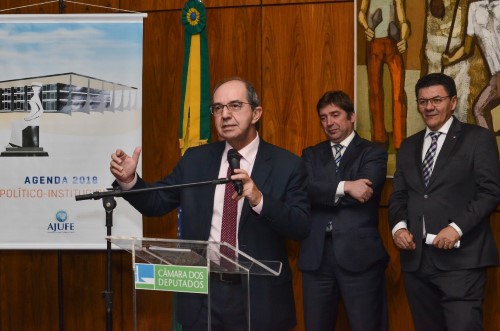 O presidente da CONAMP, Victor Hugo Azevedo, participou nessa terça-feira (22) da solenidade de lançamento da Agenda Político-Institucional 2018 da Associação dos Juízes Federais do Brasil (Ajufe), no Salão Negro da Câmara dos Deputados. O documento reúne as principais demandas legislativas, administrativas e judiciais de interesse da entidade.