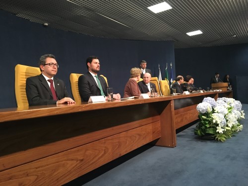 O ministro da Justiça, Osmar Serraglio, a senadora Ana Amélia (PP/RS), e o presidente da ANPT, Ângelo Fabiano Costa, também compuseram mesa.