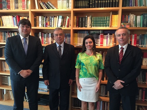 Luciano Mattos, presidente da Amperj; Aristides Junqueira e Juliana Alvarenga, advogados da CONAMP; e Nedens Freire Vieira, 1º vice-presidente da CONAMP, em reunião sobre o posicionamento da CONAMP em relação à Emenda fluminense
