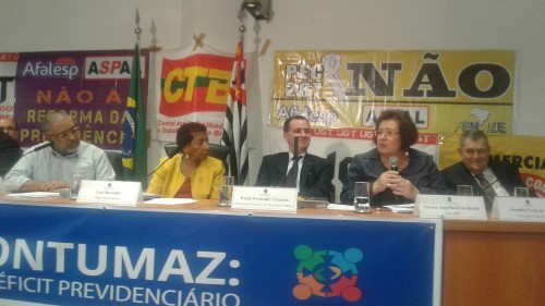 Durante a audiência, a presidente da CONAMP enalteceu o trabalho do senador Paulo Paim (PT/RS) à frente da CPI e cumprimentou o deputado federal Arnaldo Faria de Sá (PTB/SP) e a deputada estadual Leci Brandão (PCdoB), na pessoa de quem saudou todas as mulheres presentes. Norma também parabenizou o trabalho realizado pela APMP contra a reforma da previdência, em especial às contribuições de Paulo Penteado.
