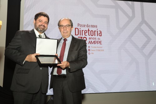 Victor Hugo homenageou Roberto Brayner com uma moção de reconhecimento pelos relevantes serviços prestados durante a gestão. O presidente da CONAMP também saudou o promotor de Justiça Marcos Carvalho, recém empossado na presidência da associação, desejando-lhe sucesso. “Vim trazer a solidariedade dos colegas do conselho deliberativo da CONAMP, que me pediram que trouxesse o abraço, com a certeza de que farás, como Brayner, uma excelente gestão à frente desta associação ministerial e contribuirás para que possamos enfrentar as agruras deste conturbado momento político e social que atravessamos”, afirmou Victor Hugo.