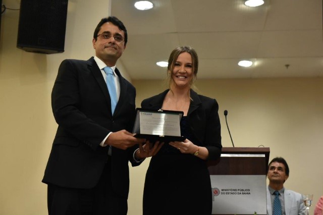 O 2º vice-presidente da CONAMP, Tarcísio Bonfim, prestou homenagem a Janina Schuenck, ex-presidente da Ampeb, com uma placa da CONAMP. Ele afirmou que o trabalho realizado nos últimos anos engrandeceu o parquet baiano e brasileiro, desejando êxito aos que iniciam o mandato esta noite.