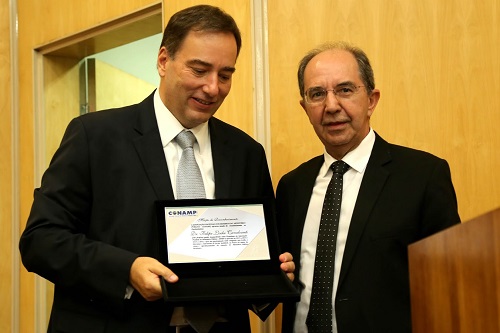Na ocasião, Victor saudou o novo presidente da APMP, José Oswaldo Molineiro, e entregou a Felipe Locke Cavalcanti, ex-presidente da entidade, uma placa com Moção de Reconhecimento, aprovada pelo Conselho Deliberativo da CONAMP pelo trabalho feito em suas duas gestões como presidente da APMP e também na entidade nacional, em Brasília.