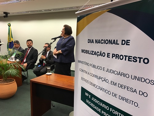 Também discursaram representantes das entidades que compõe a Frente Associativa da Magistratura e do Ministério Público (Frentas) – organizadora do ato – e os deputados Alessandro Molon (Rede/RJ), Lincoln Diniz Portela (PRB/MG) e Valternir Pereira (PMDB/MT).