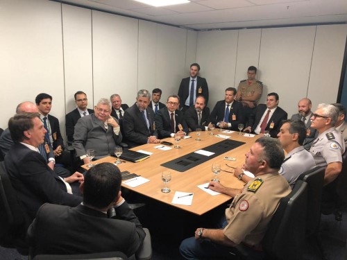 O presidente eleito Jair Bolsonaro reuniu-se, nesta quinta-feira (06), com representantes associativos do Gabinete Integrado de Segurança Pública. O secretário-geral da CONAMP, Elísio Teixeira, esteve presente representando o presidente da entidade, Victor Hugo Azevedo.