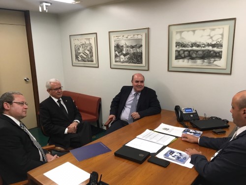 O líder do governo na Câmara dos Deputados, Major Victor Hugo (PSL/GO), recebeu no dia 26 de fevereiro o 1º vice-presidente da CONAMP, Manoel Murrieta, e o presidente do Conselho Nacional de Procuradores-Gerais (CNPG), Benedito Torres. Também esteve presente o subprocurador-Geral do Rio de Janeiro, Marfan Martins Vieira.