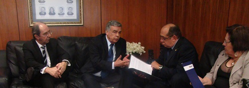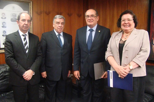 A presidente da CONAMP, Norma Cavalcanti, e o 2ºvice-presidente da entidade, Victor Hugo Azevedo, estiveram reunidos nesta quarta-feira (4) com o Ministro Gilmar Mendes do Supremo Tribunal Federal.  Na oportunidade discutiu-se temas afetos ao Ministério Público e foi entregue ao ministro memoriais sobre os embargos de declaração interpostos pela CONAMP no curso da  Ação Direta de Inconstitucionalidade nº 3943. Também esteve presente Aristides Junqueira, advogado da CONAMP.