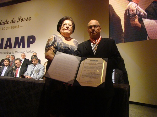 Ao ex-presidente da CONAMP, César Bechara Nader Mattar Jr., foi entregue a Medalha de Ordem do Mérito da Associação Nacional dos Membros do Ministério Público. “O trabalho de Vossa Excelência foi reconhecido pelo conselho deliberativo da CONAMP, pois sua atuação foi pelo fortalecimento do Parquet, baseada em princípios éticos e democráticos, por isso a honraria é merecida”, disse Norma a César.