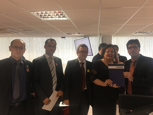 A nota técnica foi entregue ao relator da proposta, conselheiro Fábio George, pela presidente da CONAMP, Norma Cavalcanti, e pelo secretário-geral da entidade, Elísio Teixeira, no dia 09 de abril, antes da sessão plenária do CNMP. Logo após os integrantes da CONAMP acompanharam a sessão.