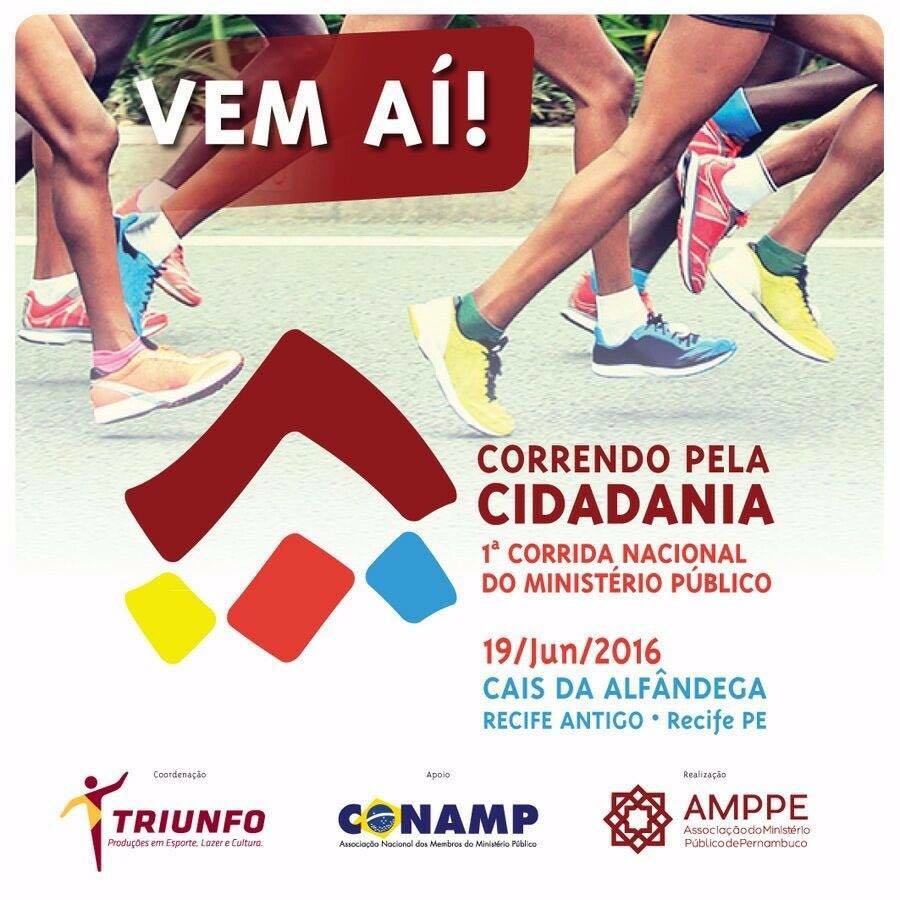 A Associação do Ministério Público de Pernambuco (AMPPE), em parceria com a CONAMP, realizará no dia 19 de junho, a 1ª Corrida Nacional do Ministério Público.