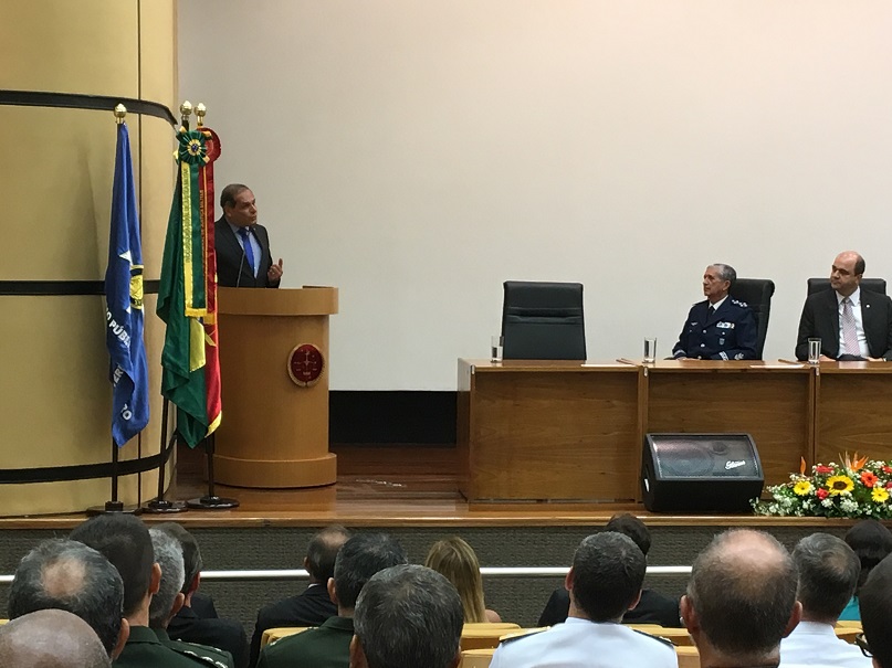 Em seu primeiro pronunciamento como procurador-geral de Justiça Militar, Jaime de Cassio Miranda fez um breve relato de sua experiência profissional, com ênfase nos últimos quatro anos como diretor-geral da PGJM, elencando as principais realizações da administração do procurador-geral Marcelo Weitzel. “O Plano Estratégico do MPM 2016-2020 será o guia que adotarei rumo a uma transformação gerencial focada em resultados e apoiada numa perspectiva de longo prazo, algo imprescindível para que se possa exercer o cargo de forma empreendedora, beneficiando toda a coletividade”, afirmou.