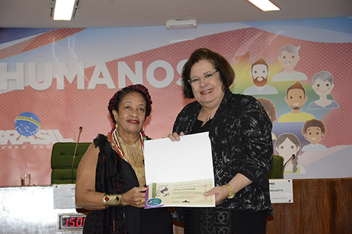 A presidente da CONAMP, Norma Cavalcanti, foi homenageada pela ministra dos Direitos Humanos, Luislinda Valois, na noite desta quarta-feira (29), em sessão especial comemorativa ao mês das mulheres.