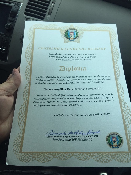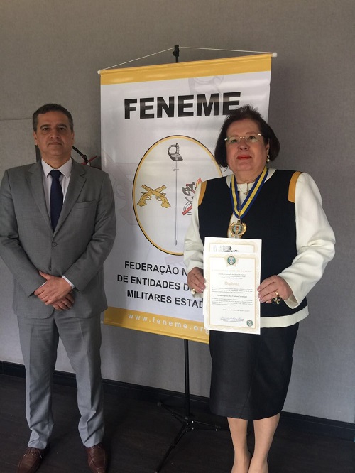 A homenagem é um reconhecimento pelo trabalho da presidente em defesa do Ciclo Completo de Polícia e foi concedida durante o XVI Encontro Nacional de Entidades de Oficiais Militares Estaduais (ENEME).