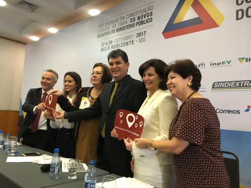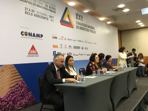 Compuseram a mesa a presidente da CONAMP, Norma Cavalcanti; a 2ª vice-presidente da Associação Mineira do Ministério Público (AMMP), Larissa Amaral; o procurador-geral de Justiça de Minas Gerais, Antonio Sérgio Tonet; o secretário de relações institucionais do Conselho Nacional do Ministério Público (CNMP), Nedens Ulisses; e a secretaria de Direitos Humanos do CNMP, Ivana Farina.