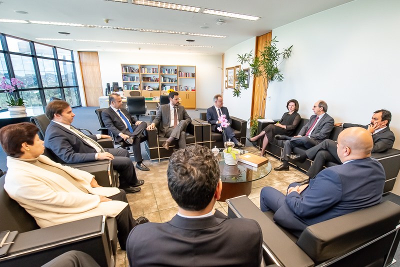 O presidente da Câmara dos Deputados, Rodrigo Maia; o relator-geral da Reforma da Previdência na Câmara dos Deputados, Samuel Moreira; o secretário especial de Previdência e de Trabalho do Ministério da Economia, Rogério Marinho; o presidente da CONAMP, Victor Hugo Azevedo, o presidente do CNPG, procurador-geral de Justiça, Paulo Passos; além de presidentes das associações que compõem a Frente Associativa da Magistratura e do Ministério Público (Frentas) e dos secretários da presidência do CNMP – Ivana Farina e Nedens Ulisses –, e o secretário-geral do MPU, Alexandre Camanho, participaram da audiência com a procuradora-geral da República, Raquel Dodge.