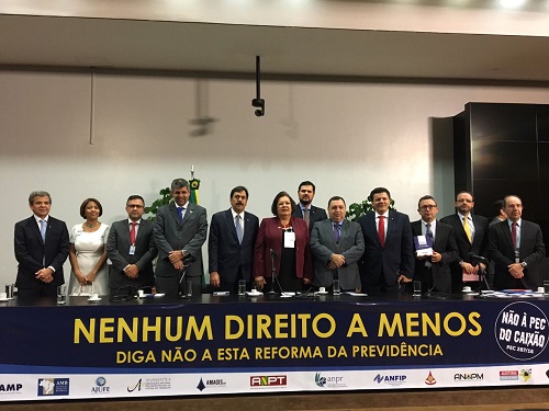 Em ato público realizado nesta quarta-feira (15), integrantes do Ministério Público e da Magistratura reuniram-se na Câmara dos Deputados para protestar contra a reforma da previdência (PEC 287/16).