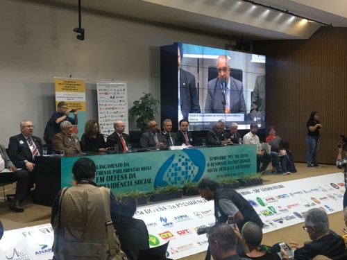 Ocorreu, nesta quarta-feira (20), o ato de relançamento da Frente Parlamentar Mista em Defesa da Previdência Social. Os presidentes das associações do Ministério Público da Bahia (Ampeb), Janina Schuenk, e de São Paulo (APMP), Paulo Penteado, participaram do evento no auditório Nereu Ramos, na Câmara dos Deputados. Logo após, foi realizado o seminário "PEC 6/19: o desmonte da Previdência Social pública e solidária”, para avaliar a proposta de reforma da Previdência apresentada pelo Poder Executivo.