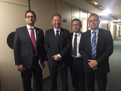 O relator-geral do novo Código de Processo Penal (CPP), deputado João Campos (PRB/GO), recebeu nesta terça-feira (8) representantes do Gabinete Integrado de Segurança Pública. O 2º vice-presidente da CONAMP, Tarcísio Bonfim, o secretário-geral da entidade, Elísio Teixeira, e o presidente da Associação Paraibana do Ministério Público (APMP), Bergson Formiga, participaram do encontro.