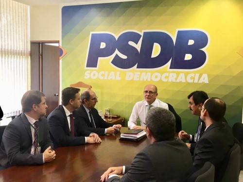 Dirigentes classistas que participam da Frente Associativa da Magistratura e do Ministério Público (Frentas) foram recebidos nesta quarta-feira (31) pelo senador Paulo Bauer (PSDB/SC), no gabinete da liderança do PSDB. O presidente da CONAMP, Victor Hugo Azevedo, o 1º vice-presidente, Manoel Murrieta, e o presidente da Associação Catarinense do Ministério Público (ACMP), Luciano Nascheweng, participaram da reunião.
