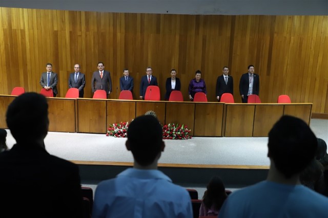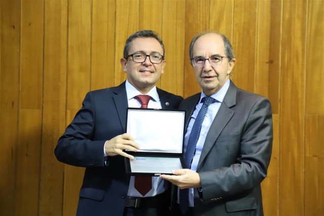 O presidente da CONAMP, Victor Hugo Azevedo, participou da cerimônia. Na ocasião, homenageou o ex-presidente da AMPDFT, Elísio Teixeira, com uma placa de reconhecimento pelo trabalho realizado em prol do MP brasileiro nos dois mandatos que exerceu. Victor Hugo também saudou Trajano e toda a nova diretoria da associação.