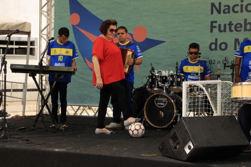 A presidente da CONAMP, Norma Cavalcanti, fez um chute inaugural para dar início ao torneio.