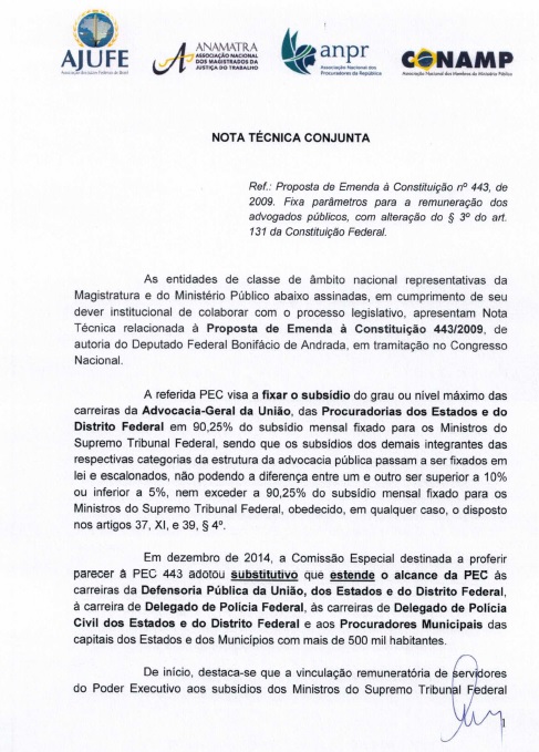 Nota Técnica Conjunta sobre a PEC 443/2009